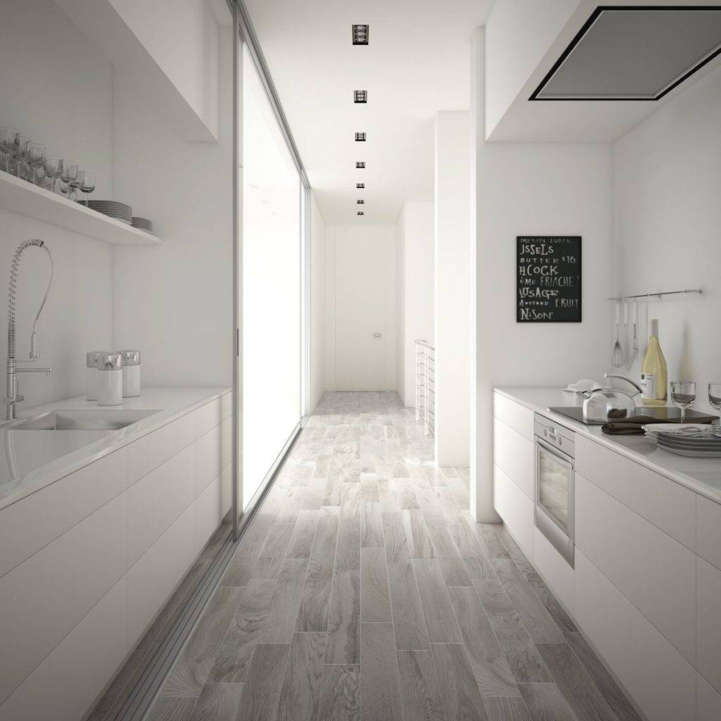 Если выбирать белый ламинат для кухни, то он лучше всего будет сочетаться в авангардным стилем. Это современный стиль, где цвет интерьера сочетает в себе оттенки серого, белого цветов. Здесь нет ярких и броских оттенков.