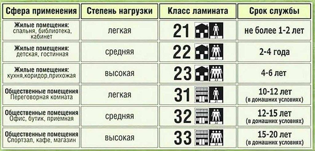Все базовые характеристики ламината, как и срок его службы, тесно связаны с его классом и толщиной ламелей: