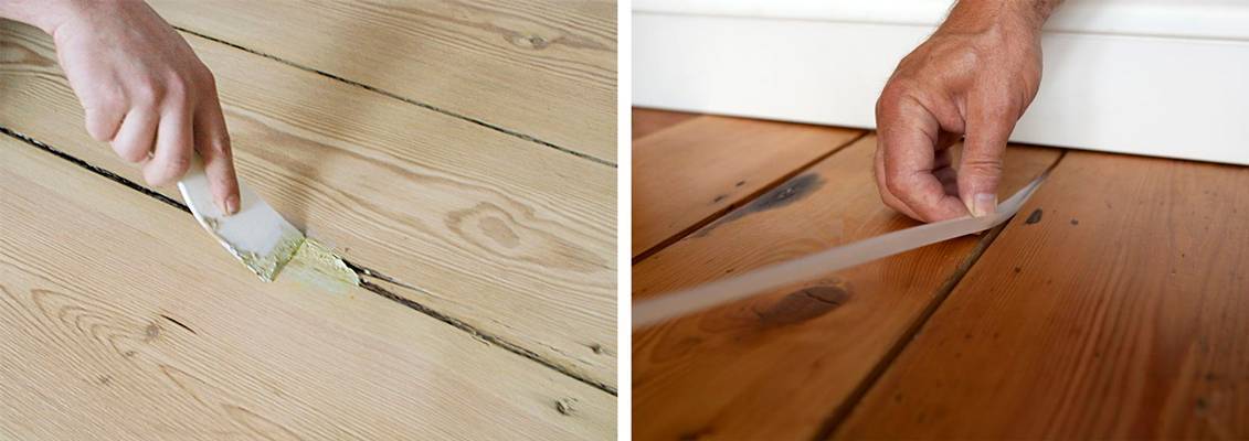 Шпаклевка быстро устраняет щели, но со временем снова требует ремонта пола