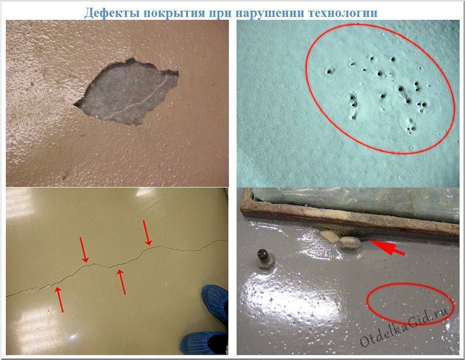 Чтобы точно определиться, какой наливной пол выбрать, необходимо учитывать, что помимо положительных параметров, все составы обладают похожими отрицательными качествами. Среди них особенно выделяются следующие: