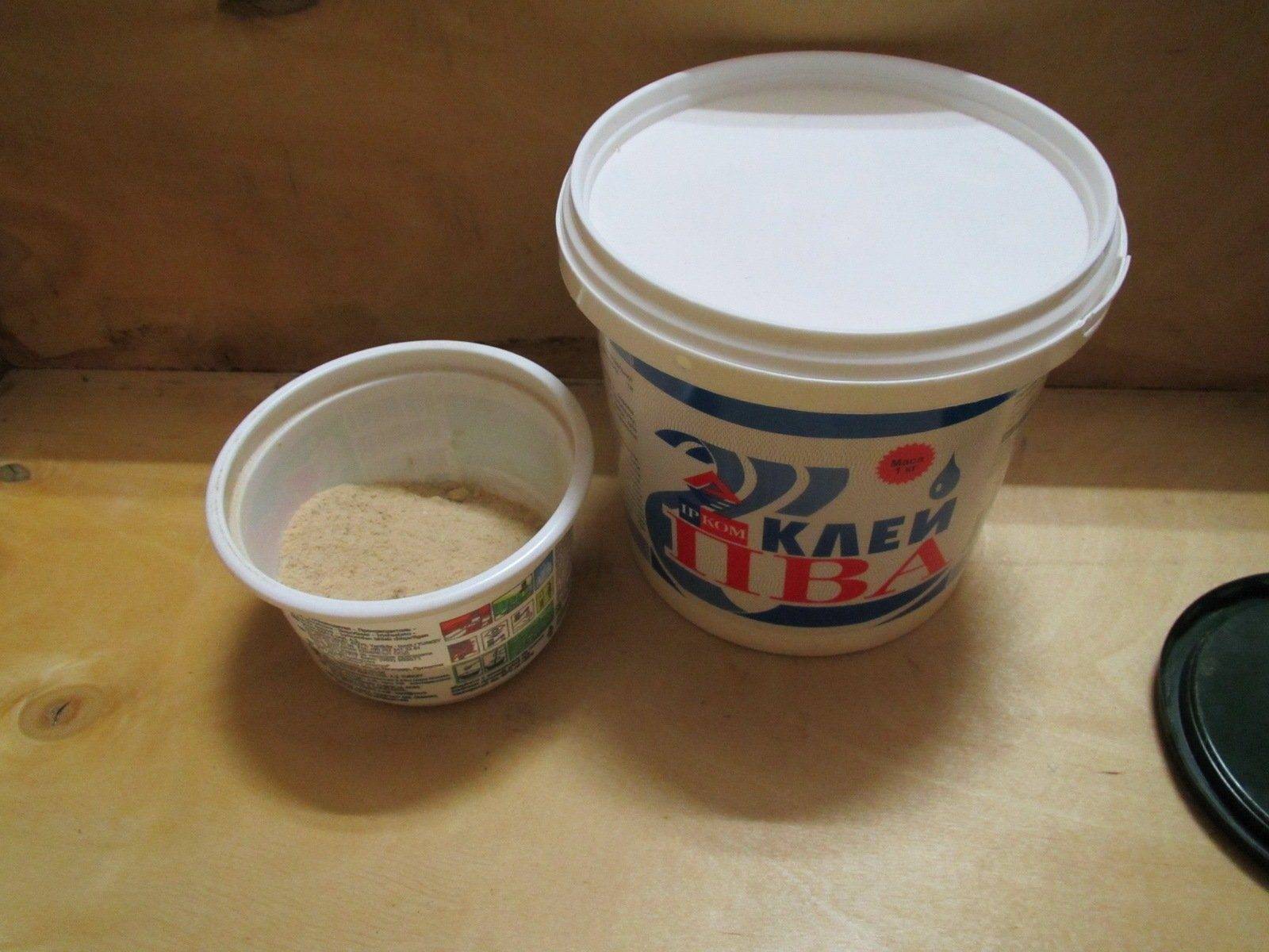 Такие средства можно приготовить своими руками из опилок и клея ПВА (реже – водорастворимого лака по дереву). Используются в основном для заделки дефектов, маскировки крепежа и промазывания швов между листами. Для обработки больших площадей тоже применимы, но уступают акриловым.