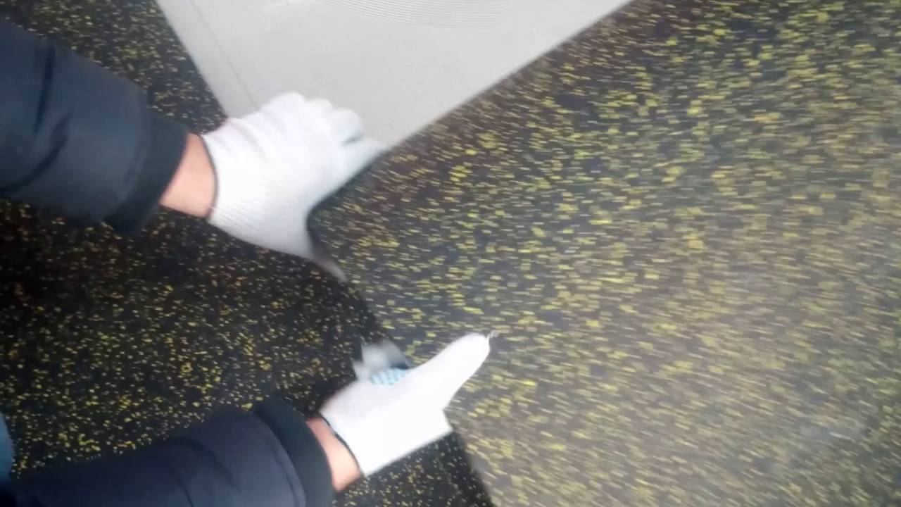 Расстилать резиновый пол лучше, заручившись помощью ещё одного человека. Эта рекомендация обусловлена тем, что один рулон материала обычно весит примерно 120 кг. Стыки можно проклеить ещё и двусторонним скотчем, что позволит увеличить прочность покрытия.