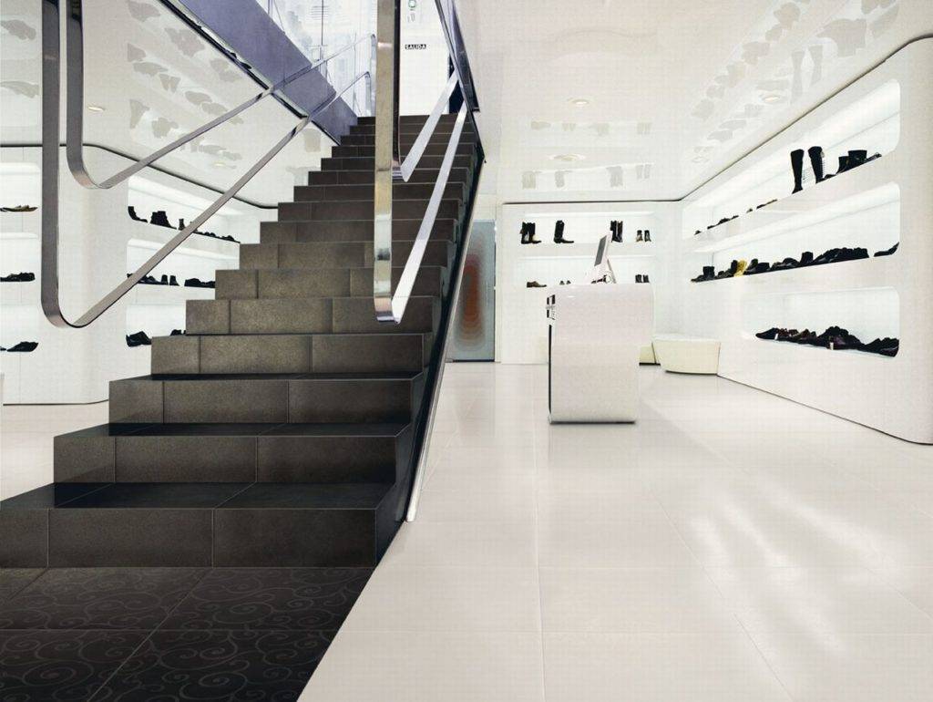 Высокая износостойкость керамогранита позволяет использовать его для облицовки пола в общественных и коммерческих зданиях