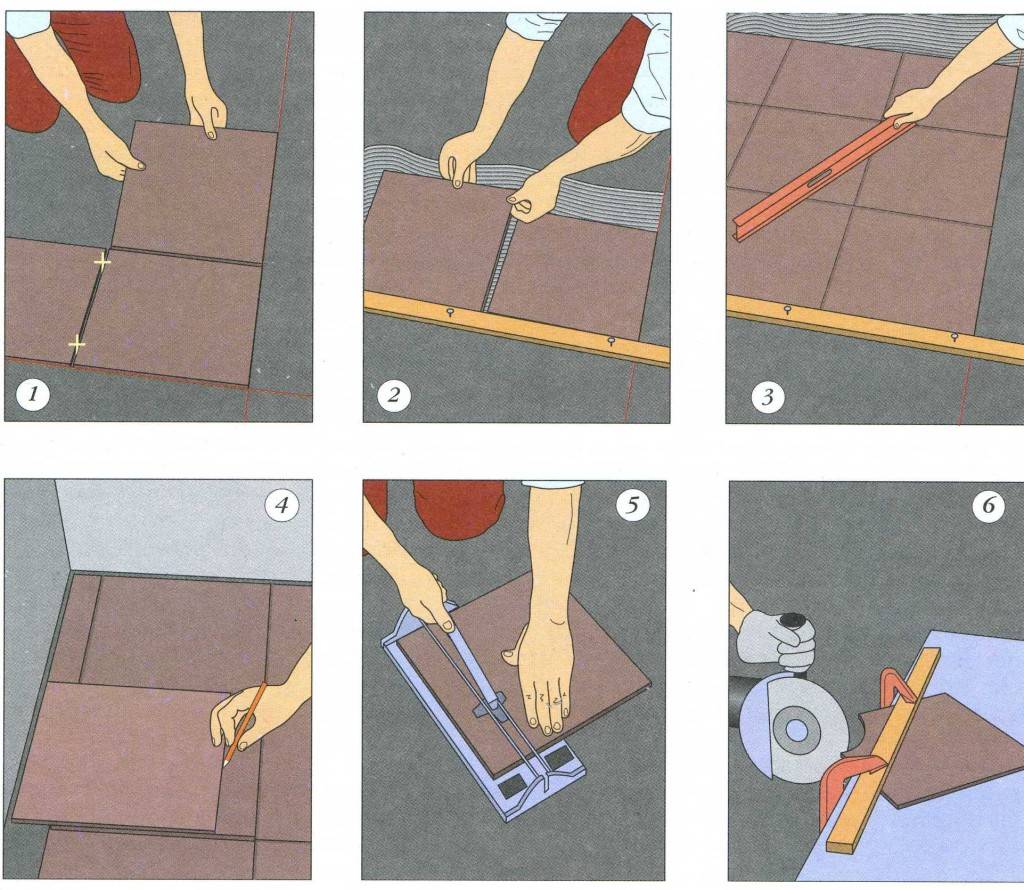 Погрешность такой обработки не превышает 1 мм, доступна любая толщина, угол резки. Керамический гранит не получает термического воздействия. Для выработки небольшого количества материала с ровными кромками используют плиткорезы.
