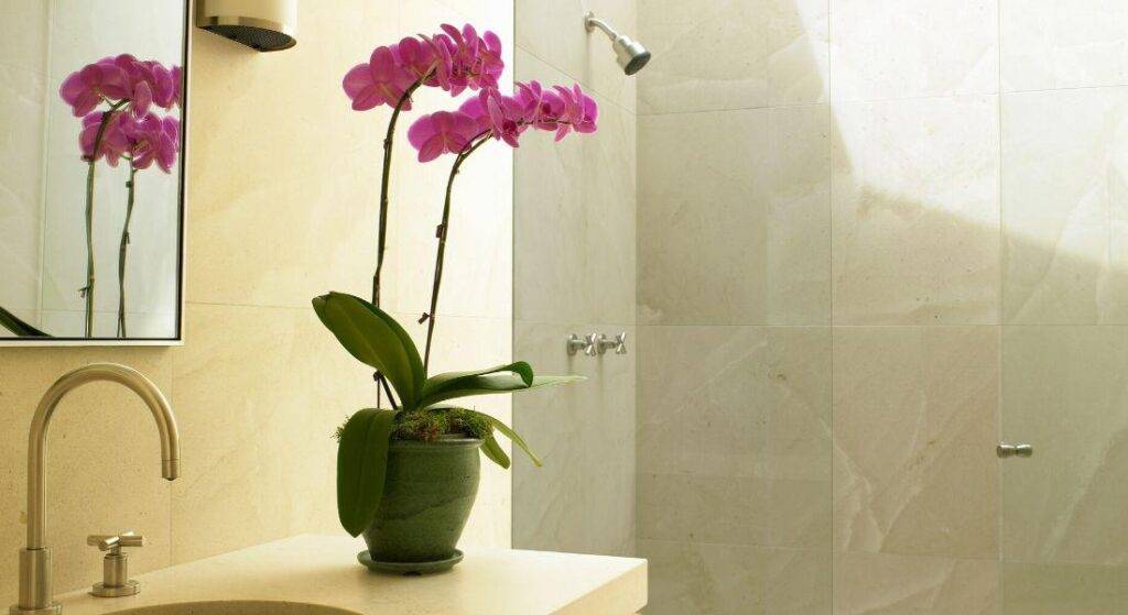 Еженедельная смена условий освещения также является хорошим решением — вы можете купить два одинаковых растения и выращивать их одновременно в разных условиях освещения — одно из них на неделю помещаем в ванную, другое — в комнату с естественным освещением, но не под прямыми солнечными лучами.Через неделю меняете местами растения. Это гарантирует, что каждый из них получит достаточное количество света для развития, и что в ванной глаза всегда будут радовать живое, красиво цветущее растение.