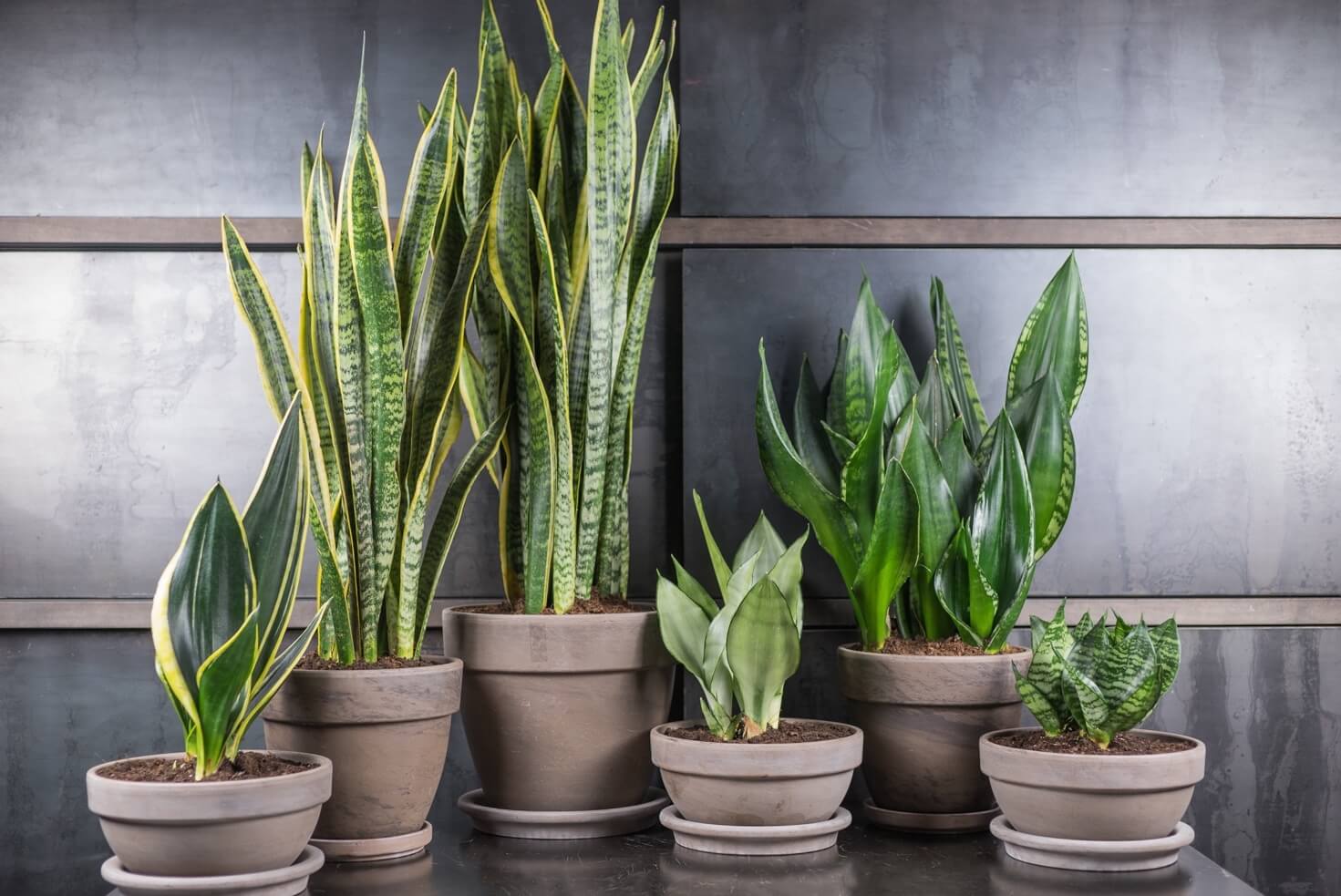 Это растение также известно как «тещин язык». Ему требуется минимальный уход. Сансевиерия накапливает влажность в листьях. Поэтому может находиться без полива несколько месяцев.