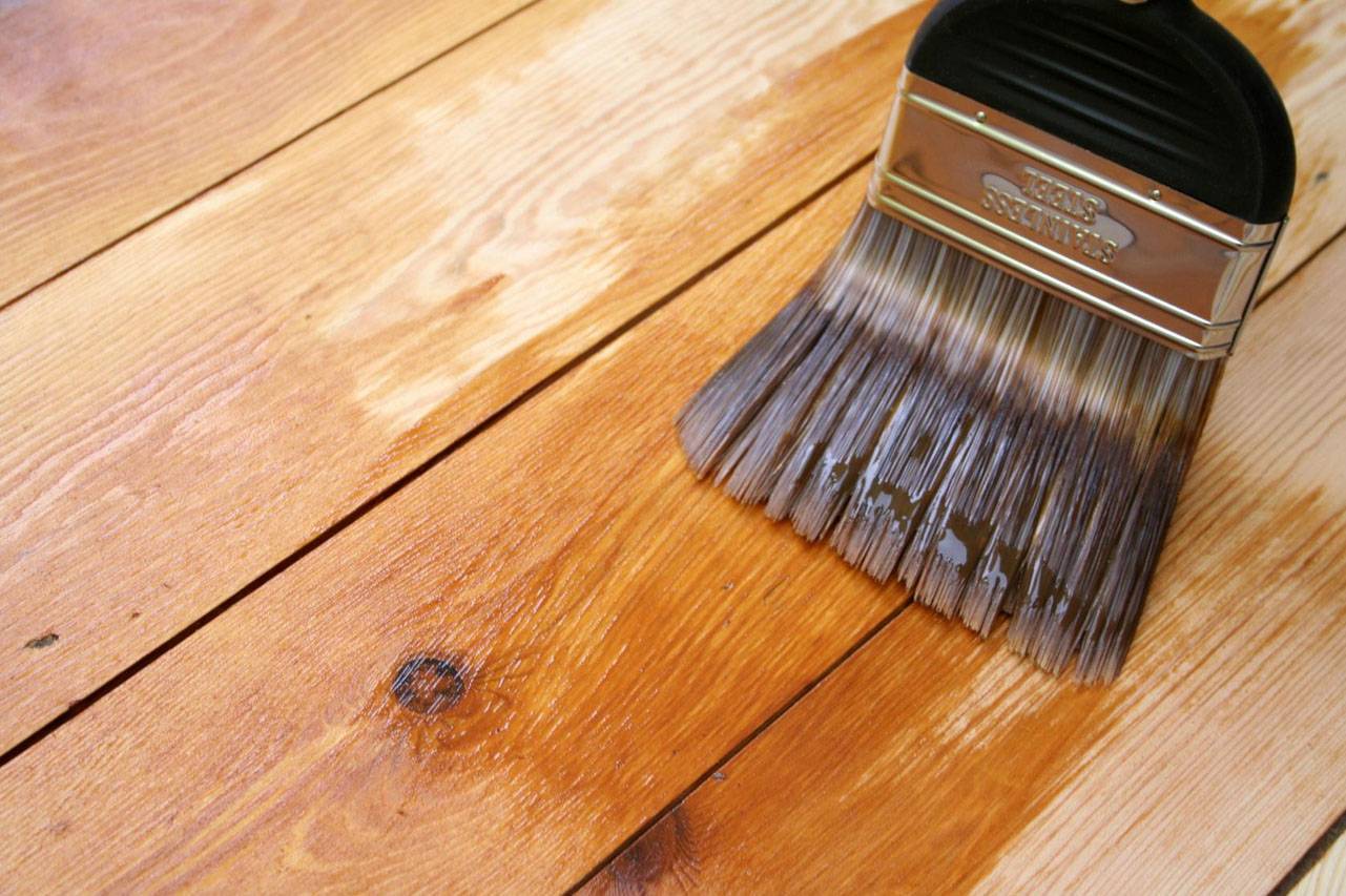 После полного высыхания грунтовочного состава, на пол начинают наносить лак. При лакировании обычно не используют валик. Лак наносится широкой мягкой кистью, которую надо внимательно выбирать, так как выпадающие волоски, сложно убрать с обработанной поверхности.