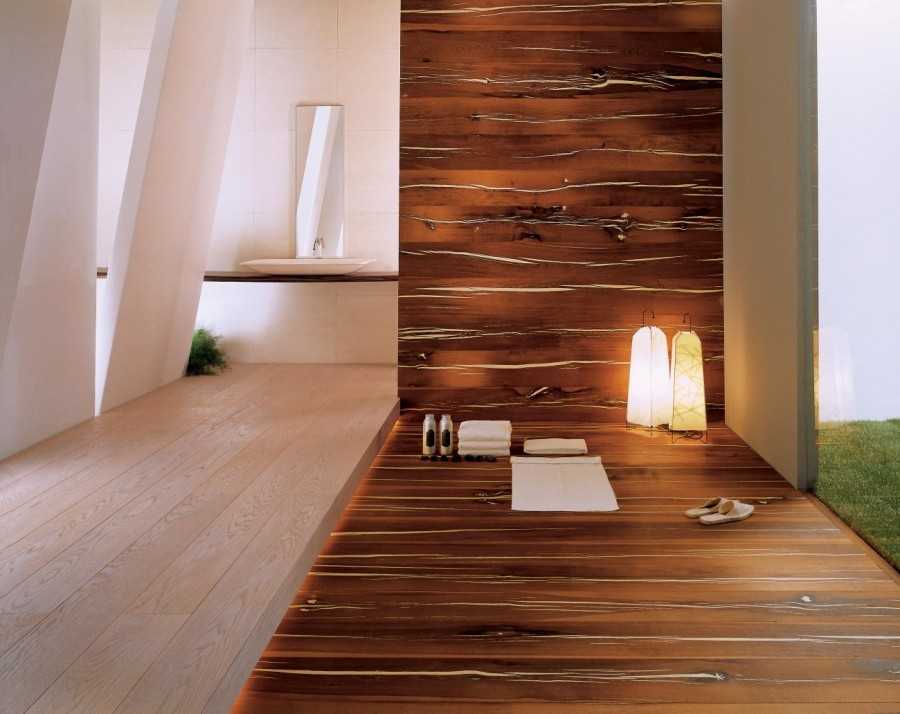 Тем не менее, применение этого материала в санузле все-таки возможно. Если соблюсти несколько условий. Первое — хорошая вентиляция. Сегодня есть современные датчики, которые включают вентилятор, когда уровень влажности достигает установленной отметки. И второе условие — аккуратность. Лить воду на ламинат все же нельзя, поэтому в районе ванны или душа лучше выбрать керамогранит под дерево.