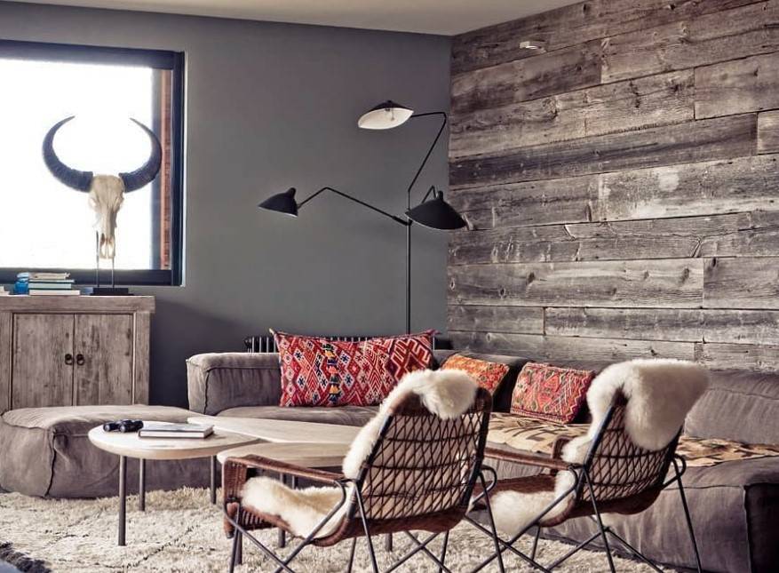 Отделка стен ламинатом в гостиной может использоваться как в классических, так и в современных стилях. Их текстура отлично дополняет аристократичные английские оформления, обстановку швейцарского шале, классического кантри и дерзкого рустика. Можно использовать такой прием для прованса и модерна, лофта и минимализма.