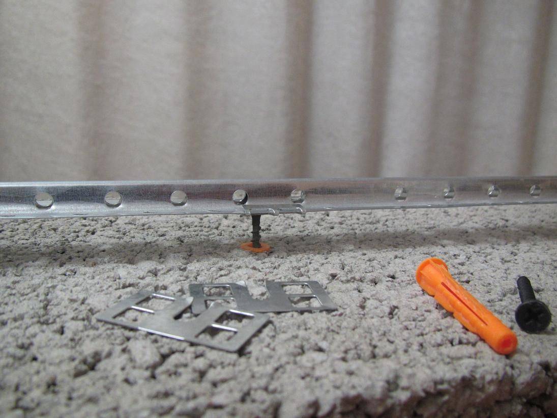 На выставленных таким образом саморезах, крепят П-образный металлический профиль. Сделать это достаточно просто: