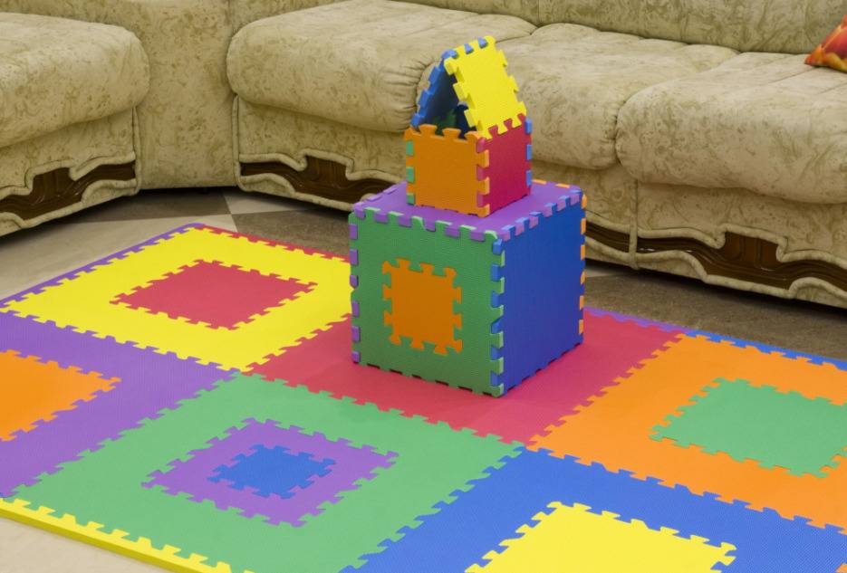 Этот материал позволяет создать мягкий пол пазл, который при тактильном контакте кажется теплым, а поэтому не требует ковров, его просто уложить, уход за ним также не станет сложностью. Такой материал имеет множество положительных свойств, заложенных производителями.