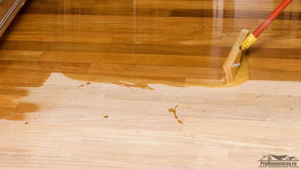 Лаком покрывают половые доски, для того, чтобы придать им надежность и защищённость. Лак должен обладать свойствами защиты от механических воздействий и повреждений, а также прямых нагрузок на пол, износостойкостью и предотвращать истирание. Так же лаковое покрытие должно защищать покрытие от влаги и перепадов температур. Все свойства лака вы можете прочитать на его упаковке, как правила его нанесения.