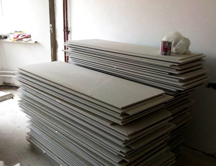 - Гипсокартонный лист (ГКЛ) – гипсовый слой с двух сторон покрытый плотной бумагой. С материалом легко работать, невысокая стоимость, но боится влаги.
