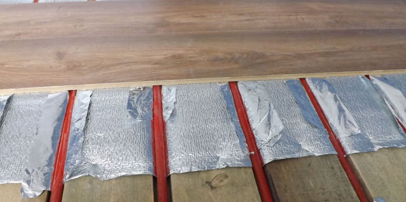 Подберите тип изделия. В доме из дерева можно использовать электрический и водяной обогрев. Выполняет укладку электрических нагревательных систем. Сначала нужно постелить фольгированный теплоизолятор.