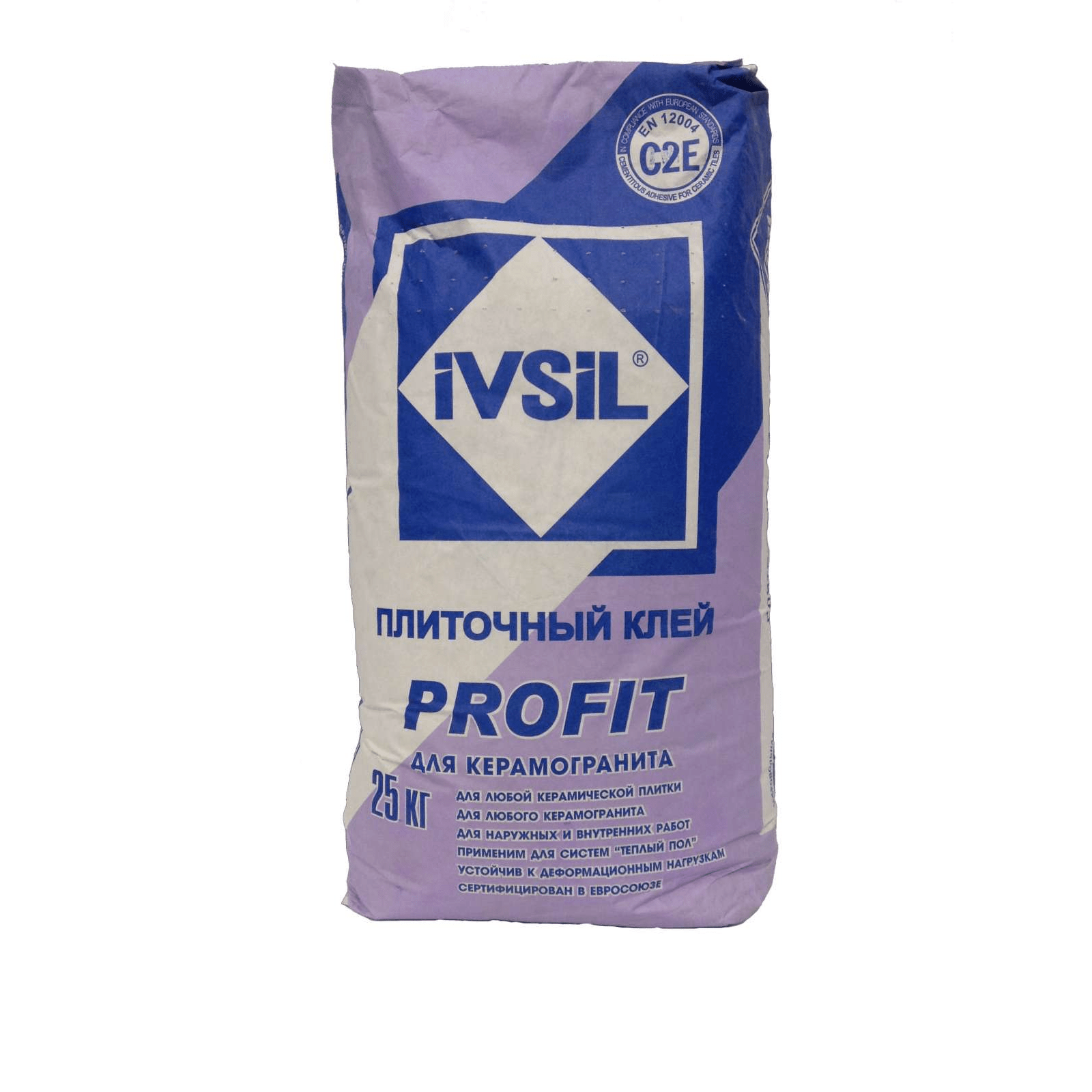 Еще один вариант — плиточный клей Ivsil Profit. Это состав для укладки керамогранита, но в случае с базой из старой плитки он подойдет лучше всего, т. к. обладает высокой адгезией и повышенной физической прочностью.