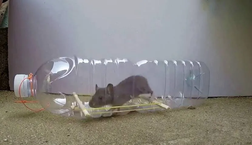 - при помощи пластиковых бутылок удастся решить вопрос с непрошеными гостями. На дно емкости поместите приманку, стенки смажьте маслом. При установке наклоните бутылку. Попадая внутрь, мышь окажется в ловушке;