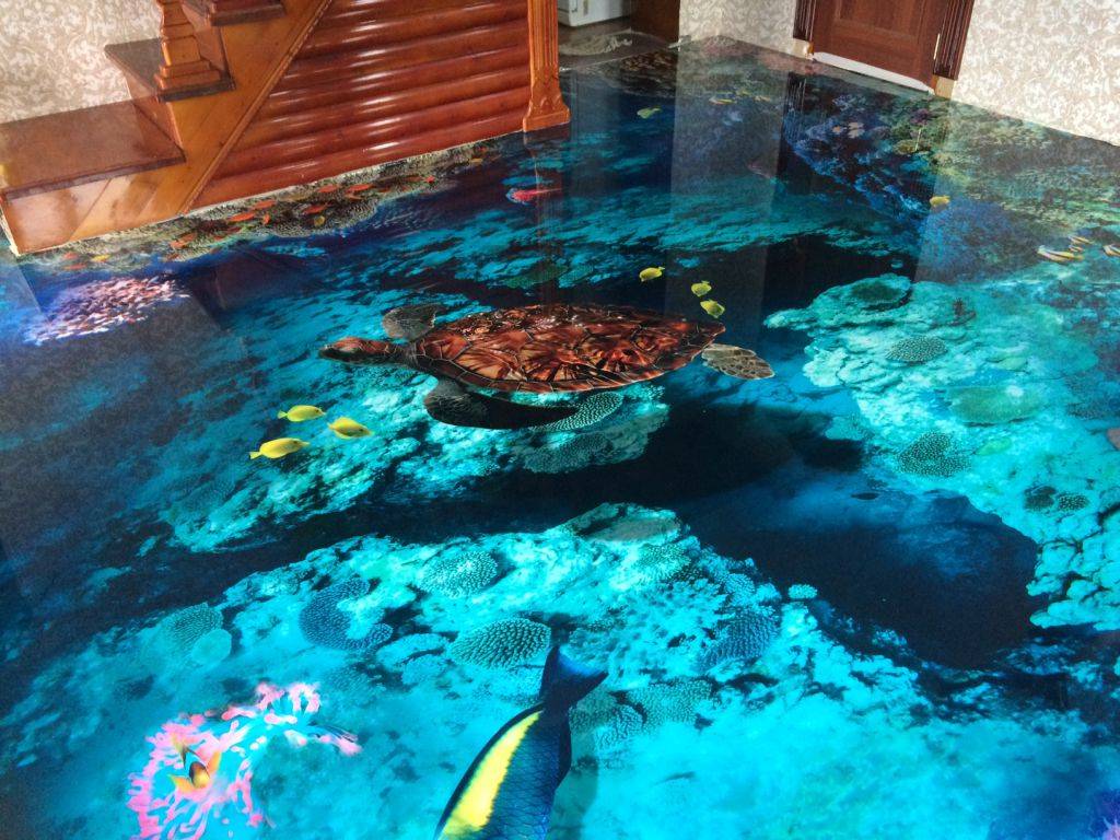 Очень красиво будут смотреться полы с раскраской или цифровым рисунком