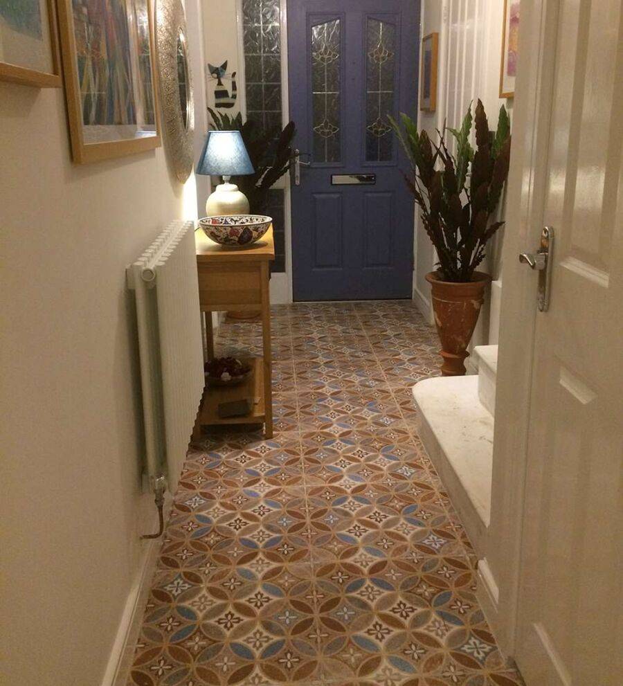 Подходящий вариант для прихожей, если хозяева непременно хотят видеть на полу рисунок. Плитка успешно стыкуется и образует вот такой незамысловатый, но очень симпатичный узор.