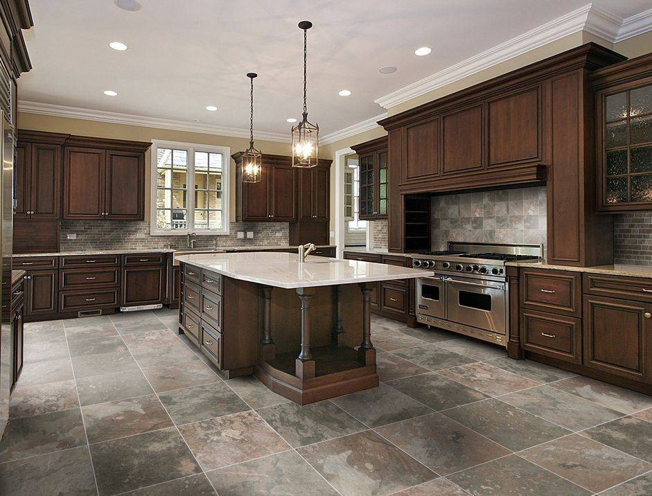 - Обилие вариантов напольной плитки – каждый может выбрать для себя что-то такое, что именно его кухне, к ее дизайну подходит.