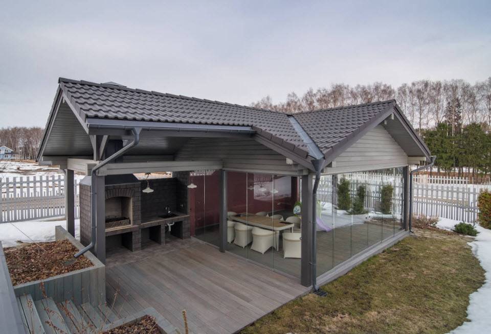 Террасы выполняются открытыми или закрытыми. Стоит рассмотреть основные преимущества конструкций, оборудованных крышей: