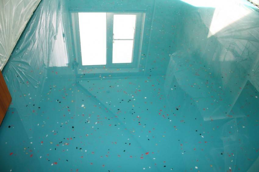 Жидкий линолеум − это пол полимерный. Это напольное покрытие на вид похоже на линолеум, но на ощупь как плитка. Этот вид пола достаточно вынослив, не боится повреждений механического вида. Он достаточно гладкий, с множеством дизайнерских решений, но очень тяжело поддается демонтажу.