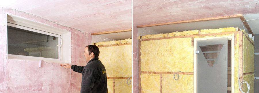 Цокольные этажи не отапливаются, плохо освещаются, да и поверхности стен не отличаются качеством. Для обустройства подходят строительные элементы из жесткого пенопласта — они сравнительно мало весят, просты в обработке, создают ровные поверхности и выпускаются в удобных размерах (их легко пронести даже по узкой подвальной лестнице). Если нет желания идти традиционным путем и обшивать сауну деревом, элементы из пенопласта оштукатуривают или облицовывают плиткой.