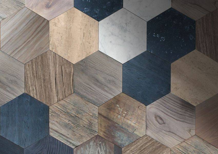 И если кому-то наскучили типичные формы, которые являются копией того, что мы привыкли делать с деревом на протяжении веков, они могут выбрать что-то менее типичное. Сегодня фантазия дизайнеров плитки больше ограничена ожиданиями покупателей, чем техническими возможностями, поэтому вы без труда найдете имитацию дерева в виде шестиугольников — равносторонних, вытянутых или треугольных.