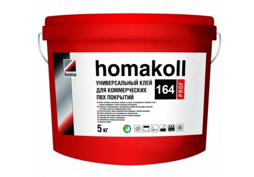 Клей необходимо подбирать в зависимости от свойств черновых полов. Водорастворимые виды во время процесса монтажа не демонстрируют высокую степень клейкости. Но, после того как они загустевают, клейкость увеличивается, имеют очень высокую прочность приклеивания. Рекомендуются для применения на дощатых полах, паркетных и пластиковых поверхностях.