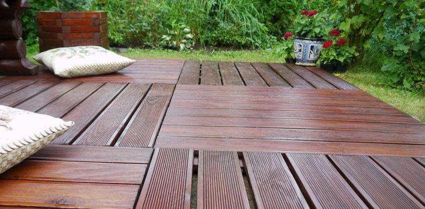 Несмотря исключительные свойства некоторых пород древесины, они все равно требуют дополнительной обработки. Защитные мероприятия включают предварительную сушку, обработку антисептиками и укрывными маслами со всех сторон. Стоит отметить, что большое распространение имеет рифленая террасная доска (декинг). Продольные канавки придают привлекательный внешний вид покрытию и уменьшают скольжение. Единственный недостаток — попадание грязи и песка в канавки. Для легкого стекания влаги, элементы декинга укладывают на небольшом расстоянии друг от друга.