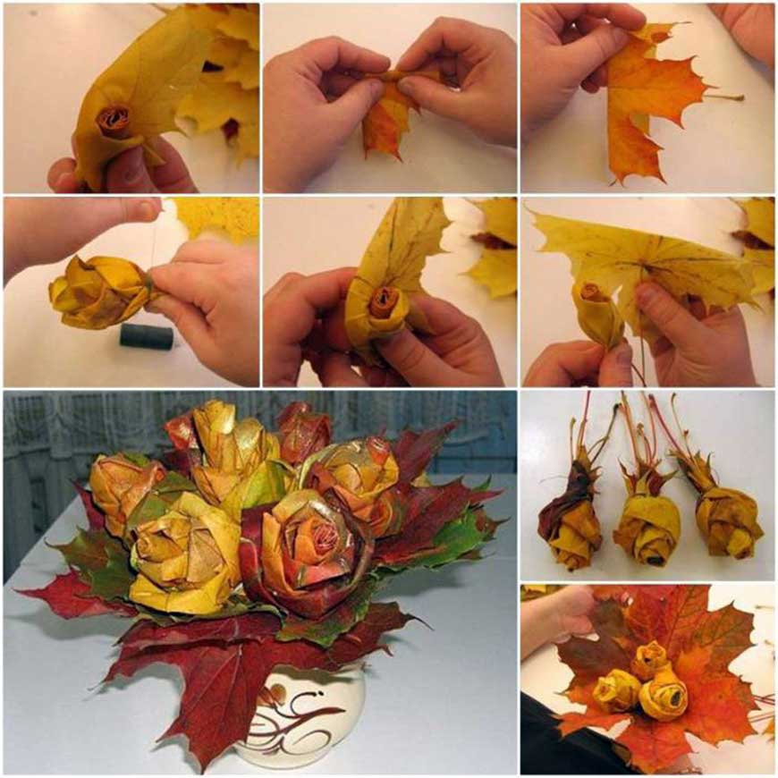 Розы из кленовых листьев. Фото: icreativeideas.com