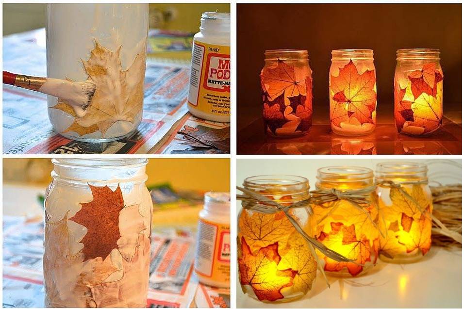 Можно использовать не только кленовые листья. Фото: icreativeideas.comСовет: если вы берете листья деревьев, учтите, что они довольно быстро высохнут, потеряют цвет и скукожатся. Помнится, когда-то я собрала в лесу целую гору разноцветных кленовых листьев и обклеила ими все стены и потолок в комнате. Причём приклеивала не плотно. Получилось потрясающе! Комната была похожа на осенний ураган, собравший с земли все самые красивые листочки. Просто слов нет.
