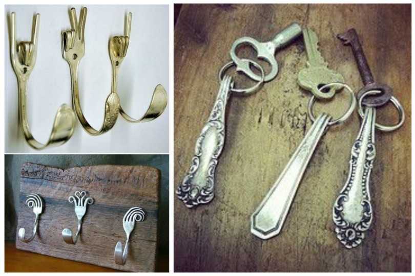 Например, те же самые вилки можно использовать для создания разнообразных вешалок, крючков, подставок. Для изготовления тех же подставок или полочек могут пригодиться и одноразовые ложки. Если же вы примените для этого металлические приборы, они могут стать весьма оригинальными элементами дизайна помещения, например, в стиле хай-тек или же стим-панк.