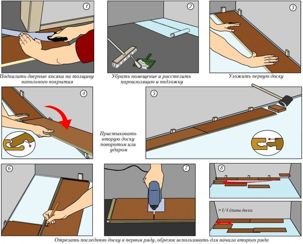На нашем сайте есть множество информации об укладке ламината — от подробных пошаговых инструкций, до видеороликов с заснятым процессом укладки панелей. Поэтому, в этой статье советы по укладке ламината мы давать не будем, так как тематика статьи совершенно другая