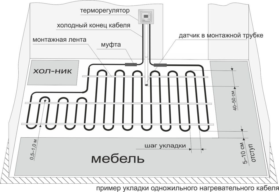 Монтаж кабельного теплого пола под кафельную плитку своими руками