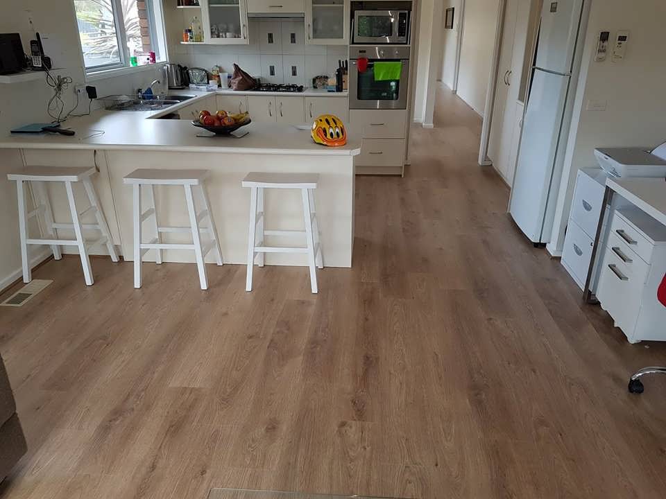 В составе ламината этого вида HDF-плита заменяется ПВХ-основой. За счет этого покрытие становится полностью неуязвимым по отношению к воде, так как пластик не имеет свойства впитывать влагу. Водоотталкивающее покрытие может быть применено не только на кухне, но и в ванной комнате и даже сауне и бане.