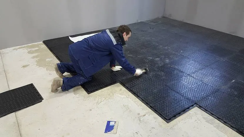 Резиновые ковры – это рулонный материал, который стоит дешевле, но и укладывается сложнее. Для монтажа понадобится минимум 2 человека.