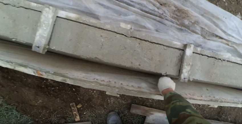 После заполнения опалубки раствором, верхнюю часть выравнивают и закрывают пленкой на 1 неделю при +20°C, на 2 недели при температуре от +17°C до +20°C, на 3 недели при температуре меньше +17°С.