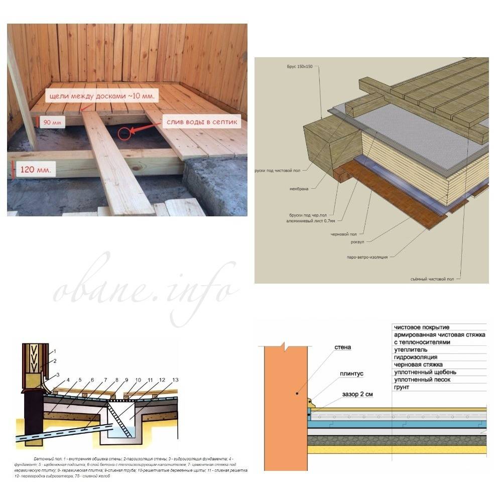 Проведенный обзор вариантов дает первое представление из чего лучше сделать пол в бане.
