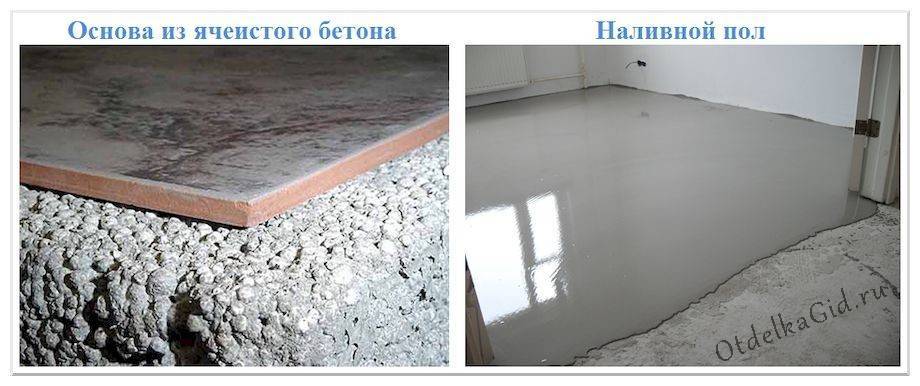 Легкие ячестые бетоны в основном используются в виде черновой основы, в то время как наливной пол выступает в качестве чистового покрытия