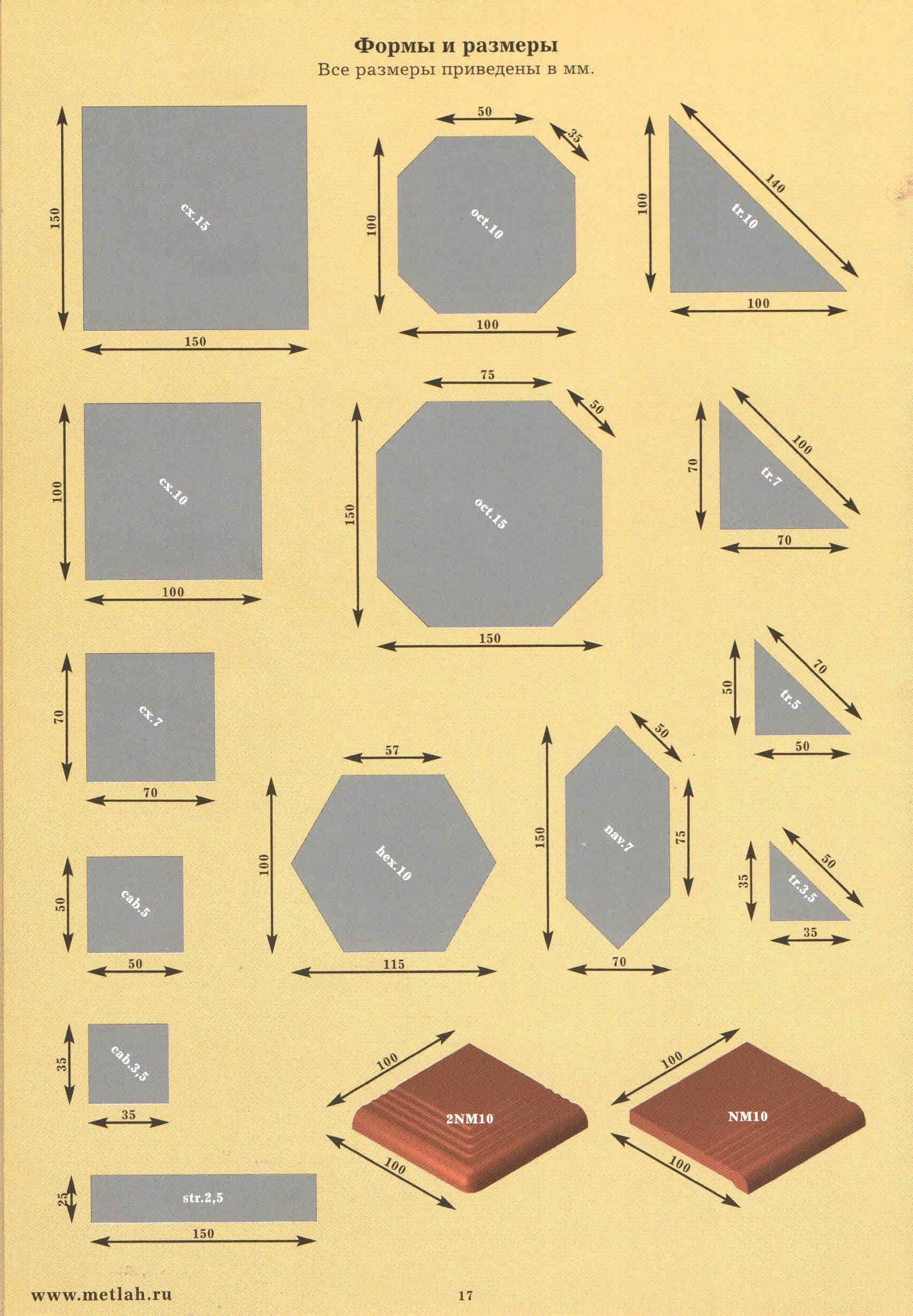 - Размером нестандартной четырехгранной плитки будут такие: 76-173, 85-195, 100-230 мм;