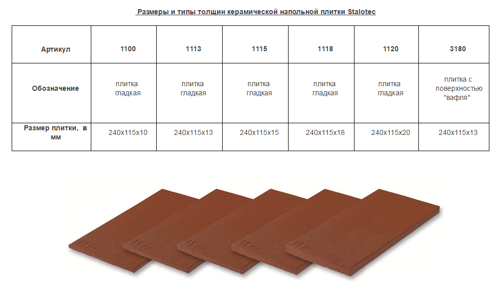 Сегодня можно встретить плитки и других размеров, квадратные и прямоугольные. Большие по размеру плитки удобно использовать при внешней отделке сооружений и зданий, плитки поменьше применяются внутри.