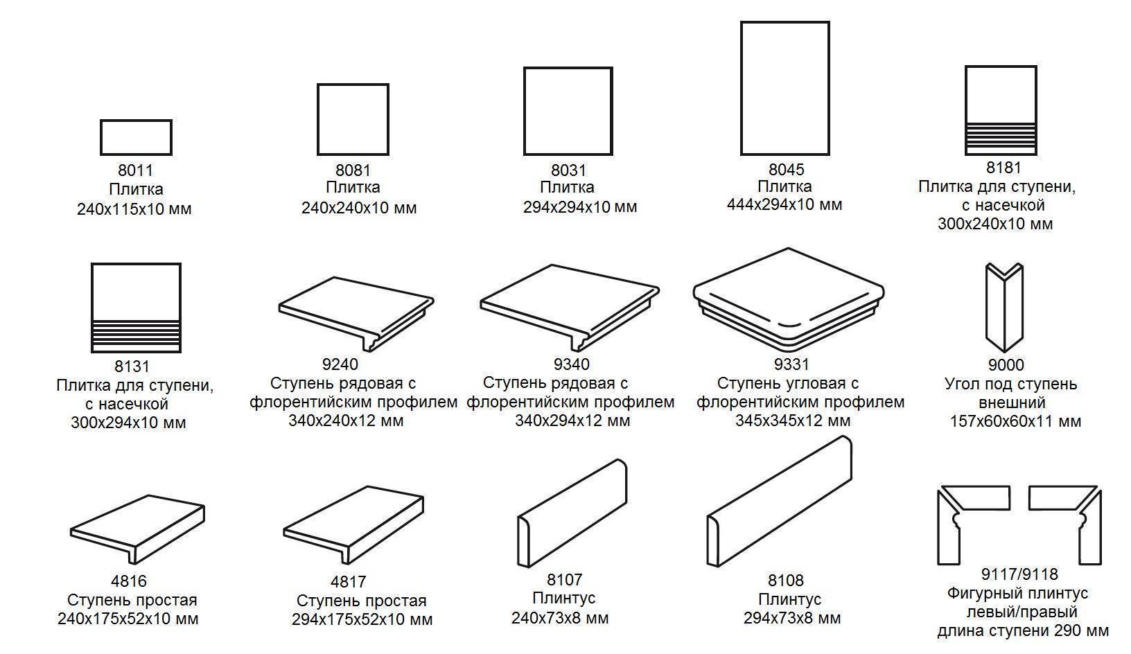 Можно выделить 8 разделов, в которых обозначены главные габариты плит, это: