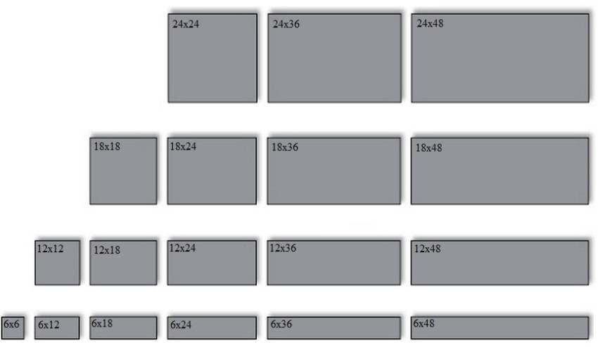 В основе деления керамогранита по видам может лежать размер плитки, самые востребованные: