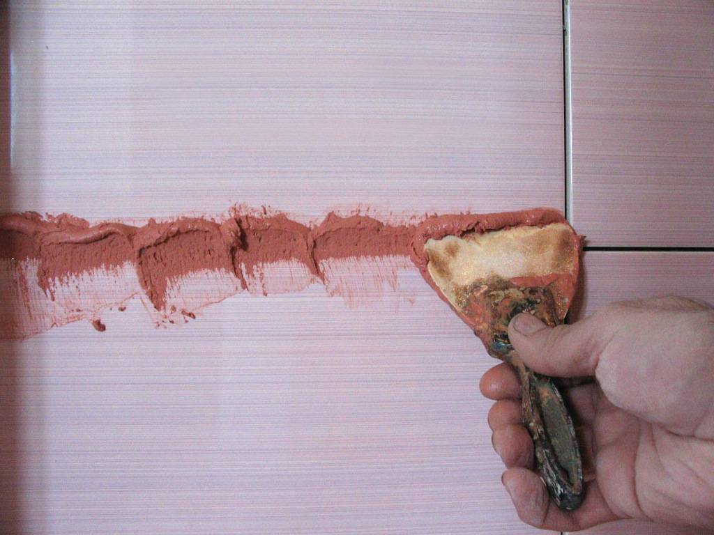 - В процессе укладки плитки на стены производят очистку швов от клея.