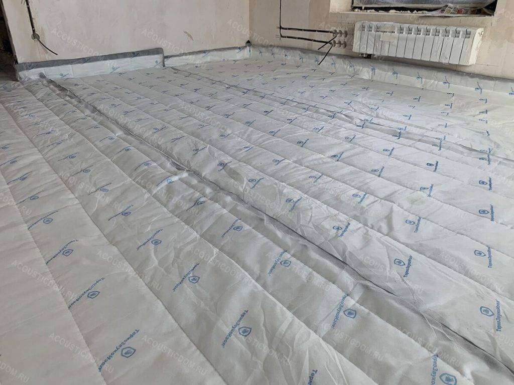 - конструкция отсекается от стен демпферной лентой, от плиты перекрытия шумоизоляцией, утеплителем и гидроизоляцией, получается плавающего типа;