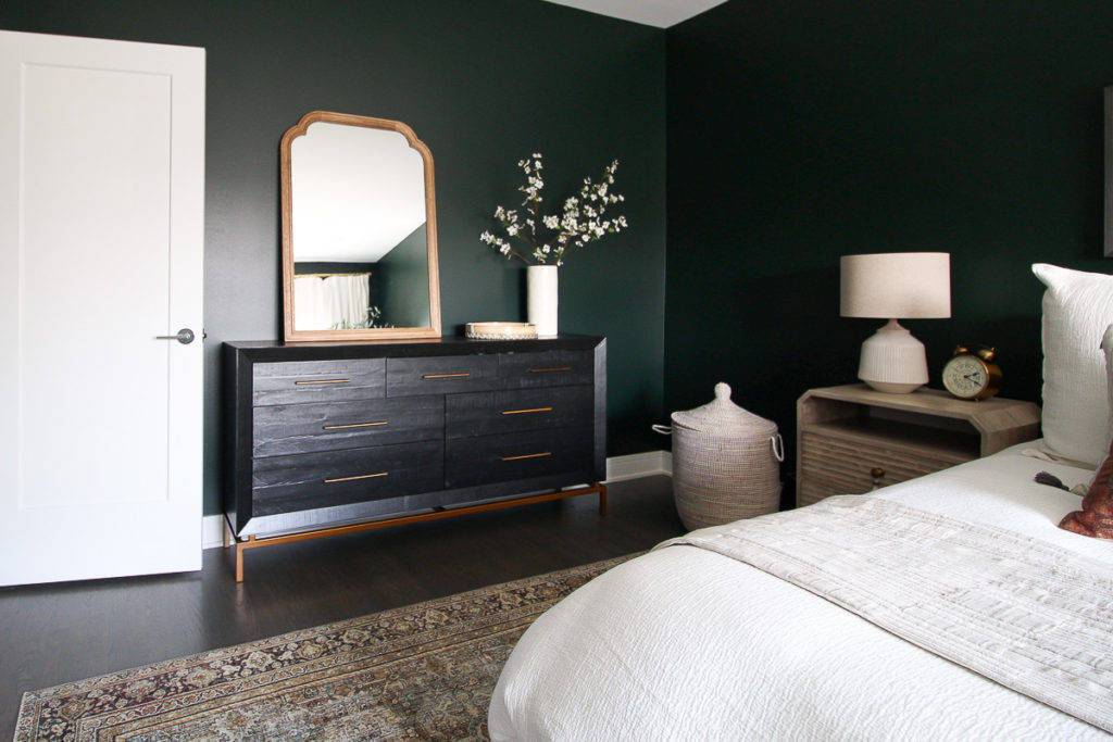 Зеленый — если вы не хотите, чтобы темно-зеленые стены привлекали все внимание, используйте его на мебели; вы можете перекрасить старые предметы мебели и заменить ручки, чтобы придать комнате новый вид по низкой цене.