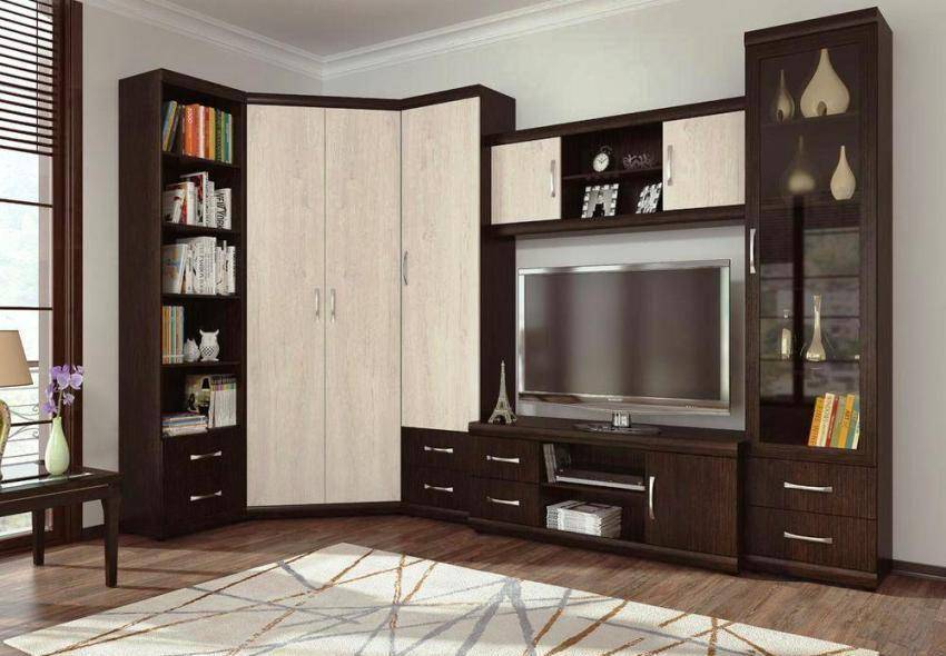 Угловая горка для гостиной: мебель для небольшой комнаты