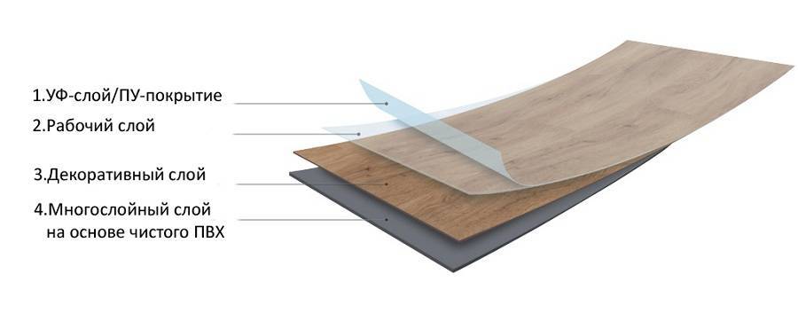 Структура слоев виниловой напольной облицовки:
