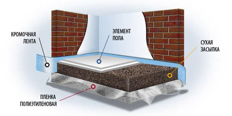 Применение сухой керамзитовой засыпки дает возможность скрыть коммуникации, а также значительно повысить звуко- и теплоизоляцию помещения.
