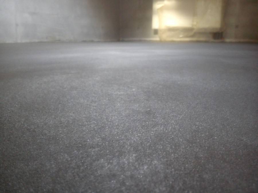 Перед началом работ поверхность чернового пола нужно подготовить. С бетона полностью удаляется пыль и мусор, щели между плитами или глубокие сколы заделываются шпатлевкой. Оголенные куски арматуры зачищаются и обрабатываются антикоррозийным покрытием.